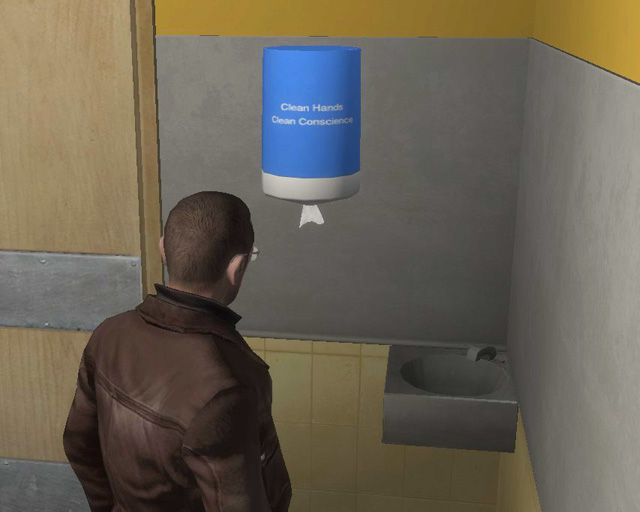 A brand of beer in the game is called "Dusche Gold". "Dusche" is German for "shower", so it translates into "shower gold", a reference to "golden shower", the act of urinating on someone. - Posters in hospitals