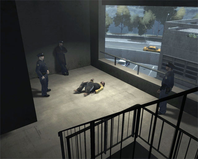 Inside the East Holland LCPD Station you can see three cops and someone on the ground. Another police brutality can be found at the northern beach ofBoulevard, Bohan.