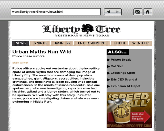 There is a Liberty Tree article that talks about urban myths in Liberty City. This could be referring to the myths that were created around San Andreas.