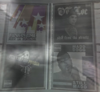 CDs from pre-GTA IV musicians are found in different places in GTA IV: Madd Dogg - Still Madd and OG Loc -Str8 from tha Street, both rappers in GTA San Andreas.Rudy LaFontaine - Funk in Time and Sunshine Shine - Mine Until Monday can both be heard on Lips 106 on GTA Liberty City Stories, and Purser - Feel the Paincan be heard on Head Radio on LCS.